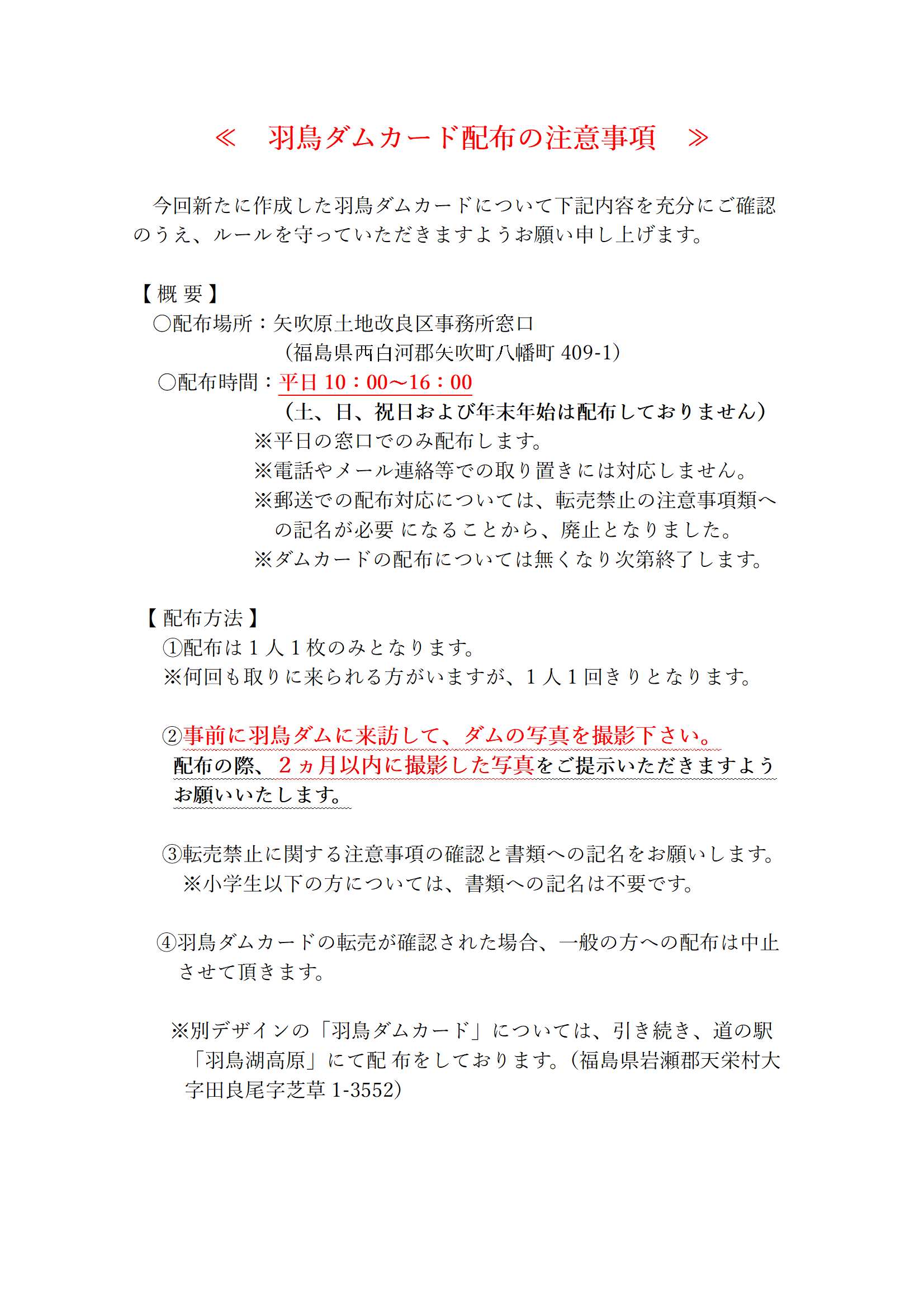 配布には先に羽鳥ダムを訪問し、撮影した写真(約2か月以内)の提示が必要になりますの、